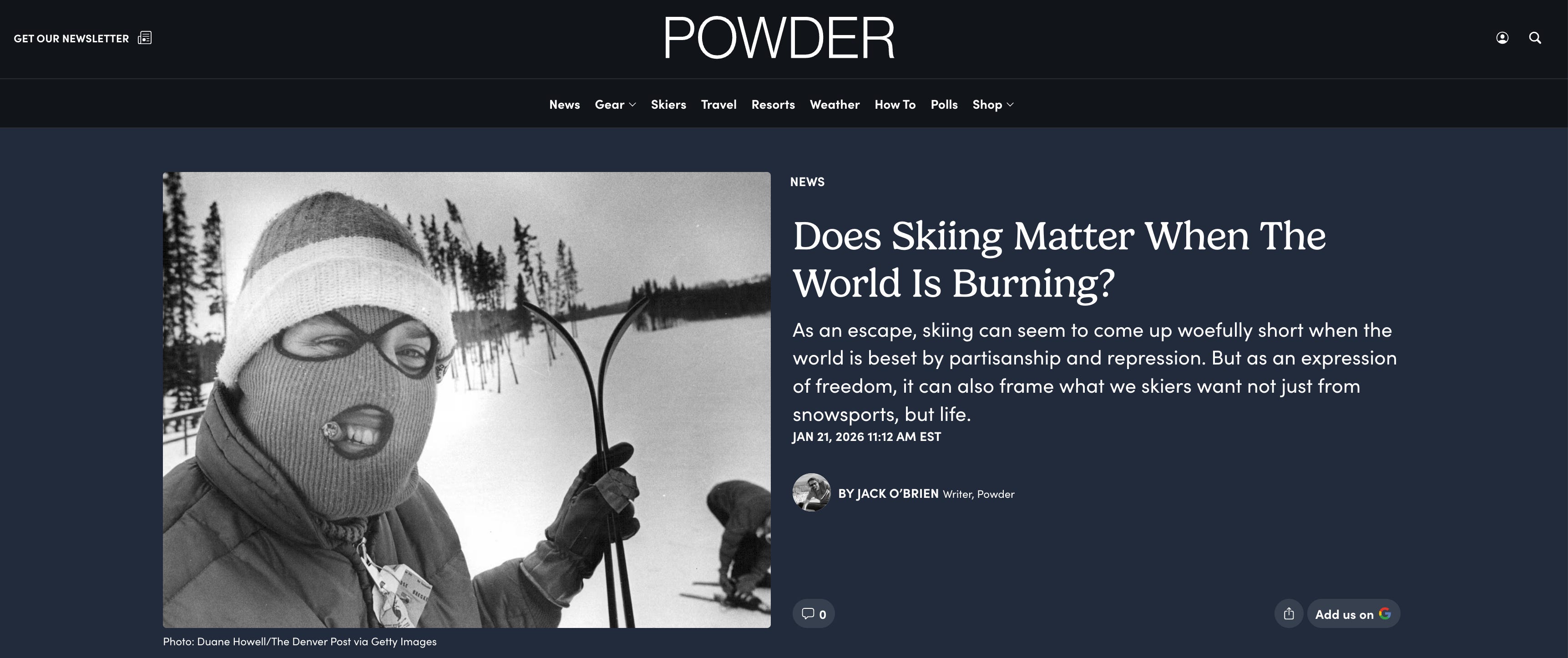 7. Does Skiing Matter When The World Is Burns, asks this timely Powder Magazine story.
